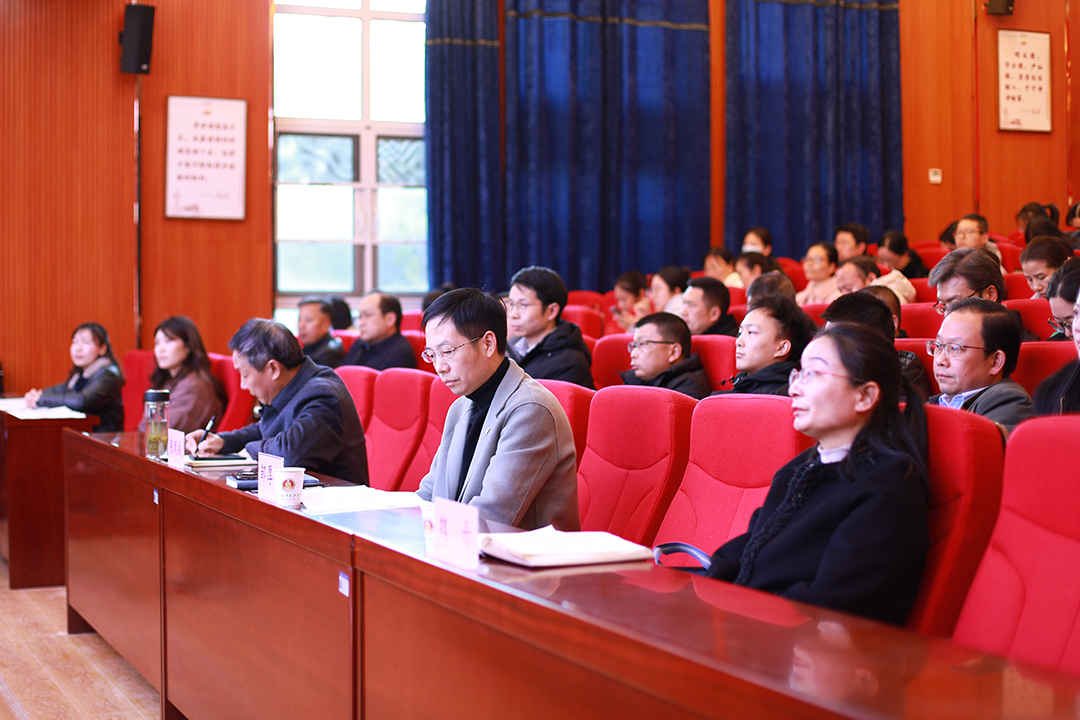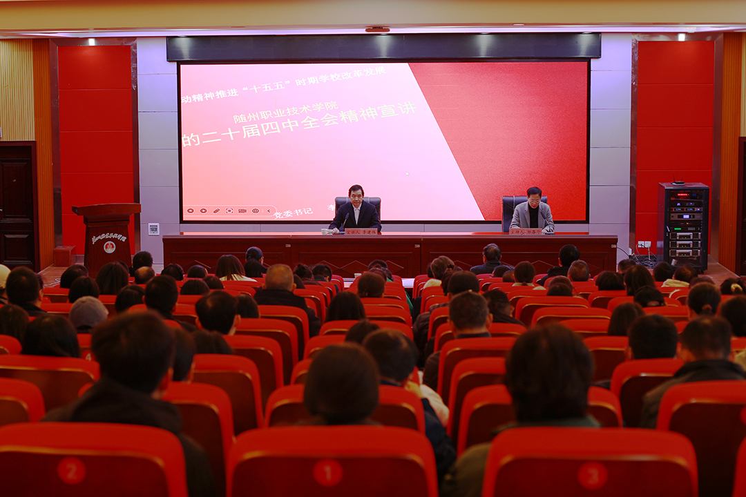 12月3日,Beat365官网党委理论学习中心组扩大学习党的二十届四中全会精神,党委书记李建伟作了题为《以历史主动精神推进“十五五”时期学校改革发展》的宣讲报告。会议要求全校上下以历史主动精神推进申本攻坚和新质随职建设,要求将学习成果转化为推动改革发展实际成效,为随州“单项工作走前列,整体工作争进位”、为中国式现代化贡献更多随职智慧和力量。校党委委员、副校长邹厚亏,党委委员、纪委书记、监察专员魏丹,工会主席张凤成,全校教研室主任以上干部和党员参加学习。