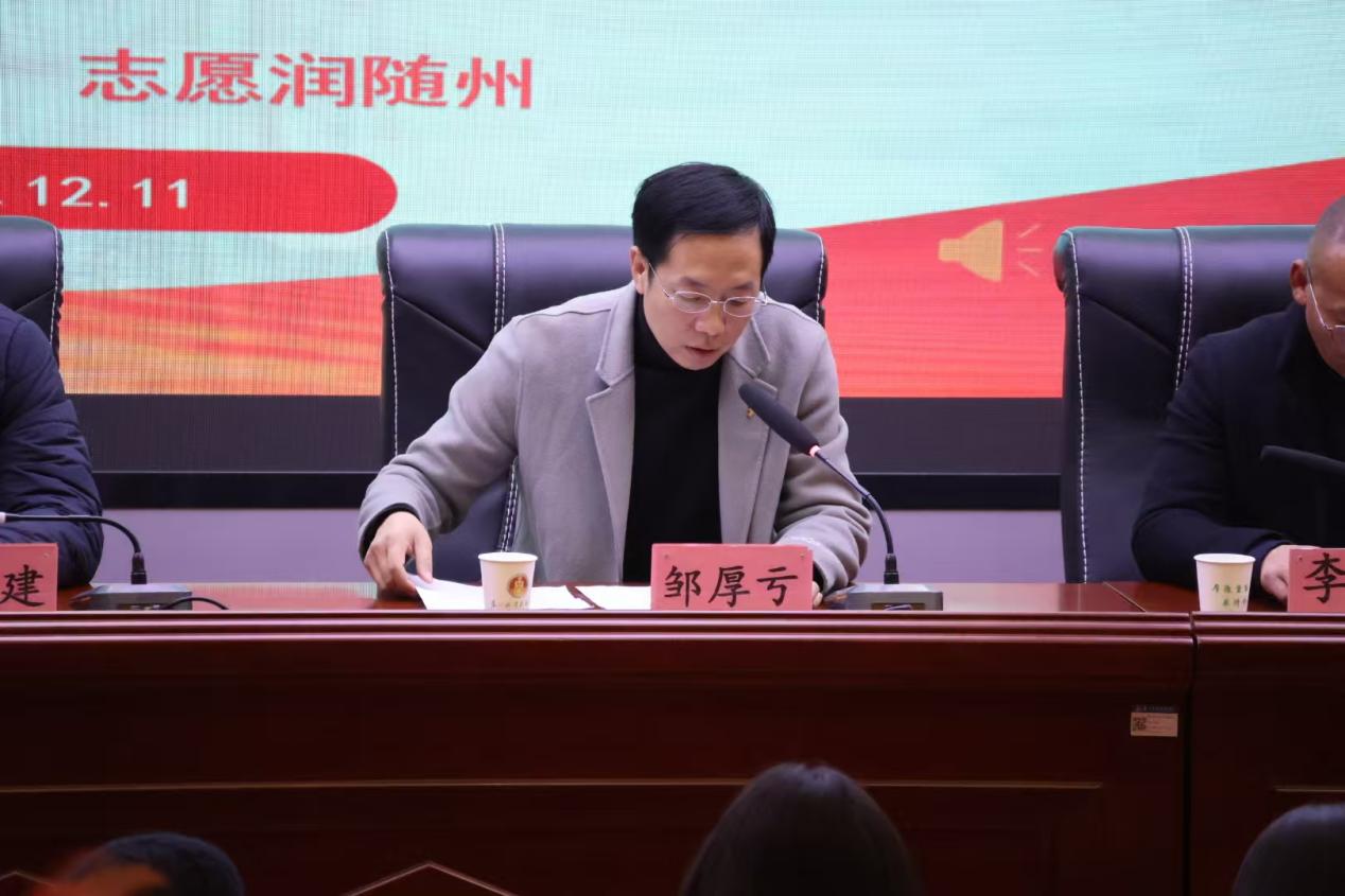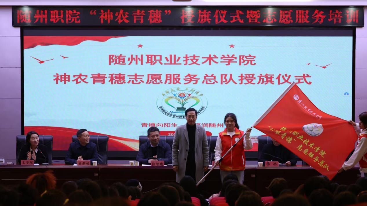 12月11日,Beat365唯一官方网站在学术报告厅举行“神农青穗”志愿服务总队授旗仪式暨志愿服务能力提升培训。校党委委员、副校长邹厚亏,随州市委社会工作部四科科长徐智建,随州市志愿服务联合会会长李冰出席活动。学校党委宣传部、学生工作处、团委等部门负责人及各二级学院志愿服务队师生代表参加。