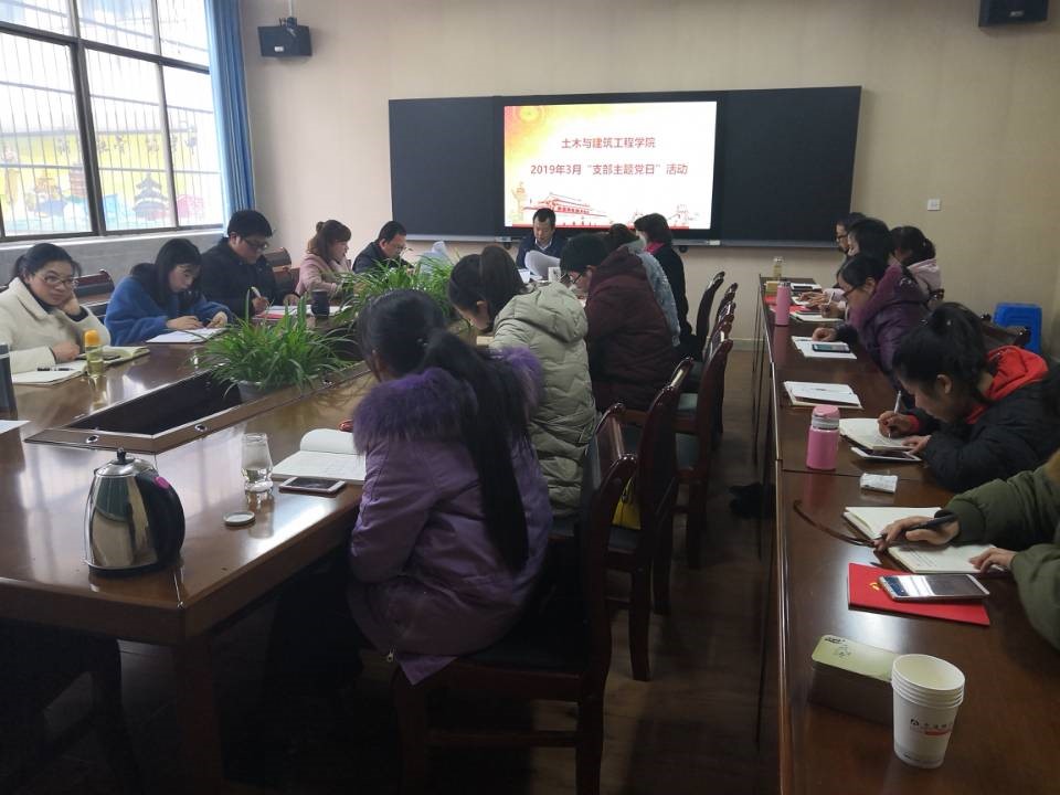 2019年3月1日下午2:30,我院在1107会议室召开了3月份支部主题党日活动,会议由教工支部书记杨莉主持,全体党员及干部共计21人参加此次活动。