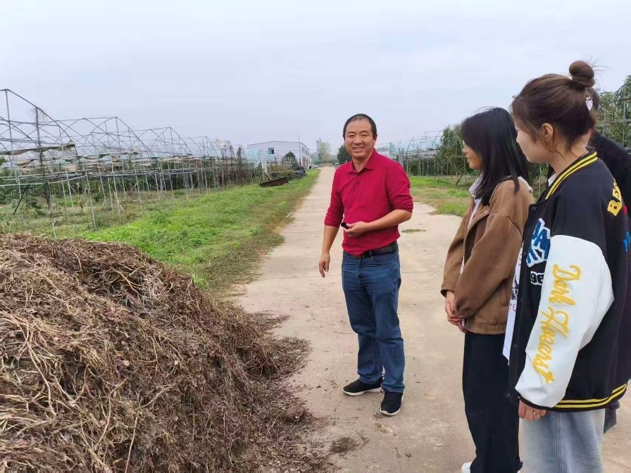在实践活动中,农场负责人何振永结合多年生产经营经验,为师生们开展了生动的现场教学。他系统讲解了土地改良对提升土壤肥力、改善土壤结构的重要作用,并现场演示了具体操作步骤。同时,围绕自然发酵堆肥技术,从原理分析、原料配比到发酵过程管控等环节进行了全面细致的讲解,使抽象的理论知识转化为可操作的实践技能。