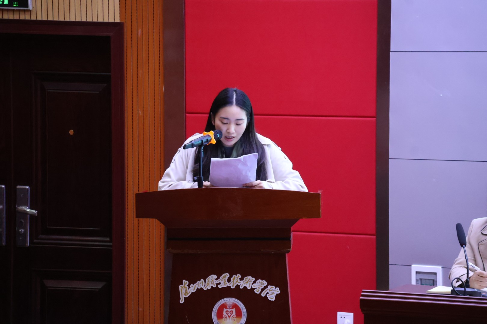 文化旅游产业学院2025级高铁客运服务班周旭作为学员代表发言。他表示,将和全体学员一道,珍惜此次学习机会,坚定理想信念,精进专业技能,坚持知行合一,严守纪律规矩,努力成长为“厚德重能求特创新”校训精神的忠实践行者,为学校与社会发展贡献青春力量。