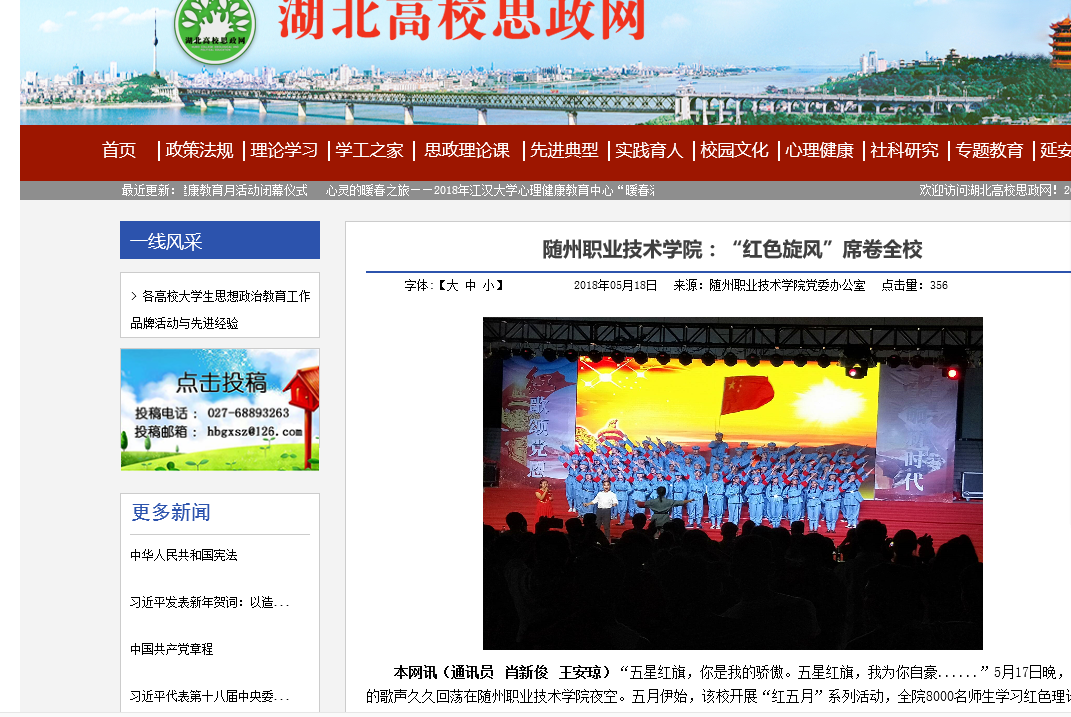 上一条:湖北高校思政网:随州职院“五心”法营造少数民族学生温馨之家