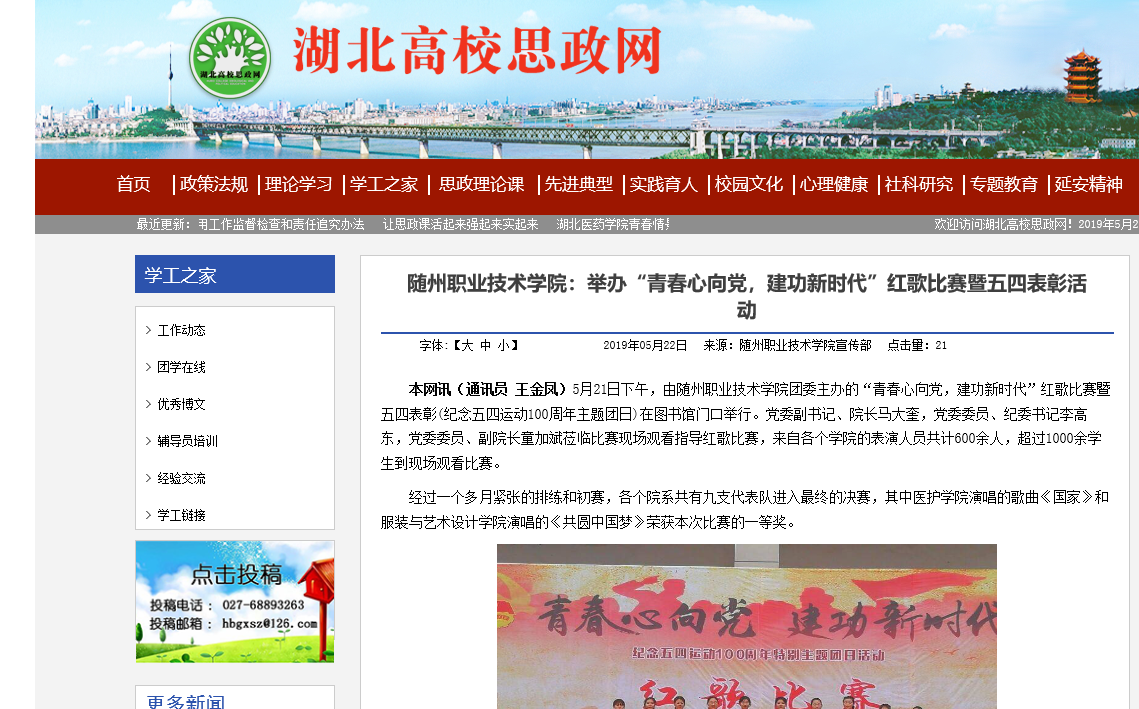 上一条:随州新闻频道:随州职院被授予湖北省产业工人培训示范基地