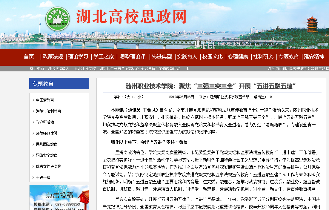 下一条:湖北高校思政网:Beat365唯一官方网站——随州市“十进十建”工作经验交流会在随州职院召开