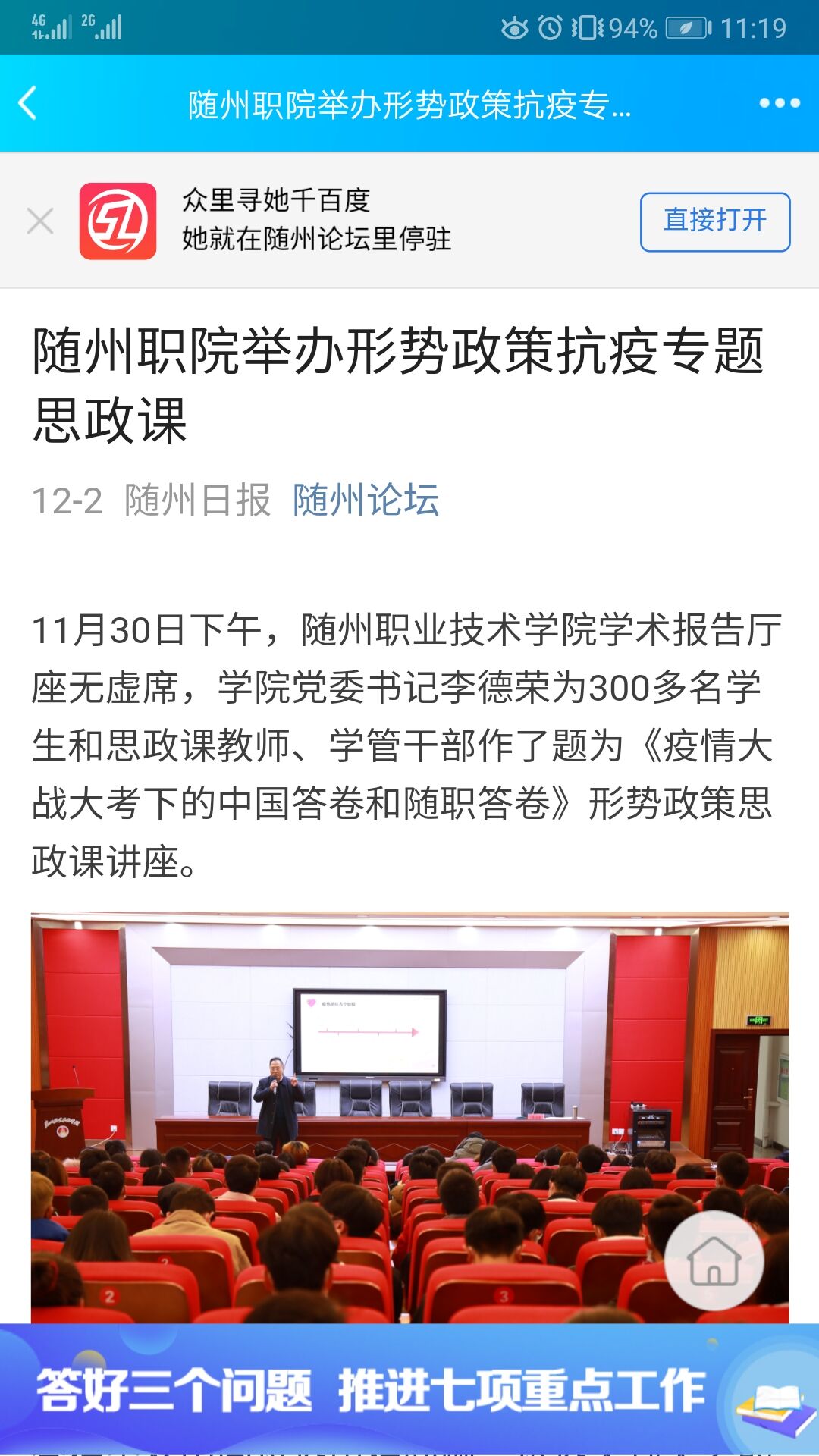 上一条:随州新闻网、随州论坛:随州职院举办形式多样系列防艾宣传活动